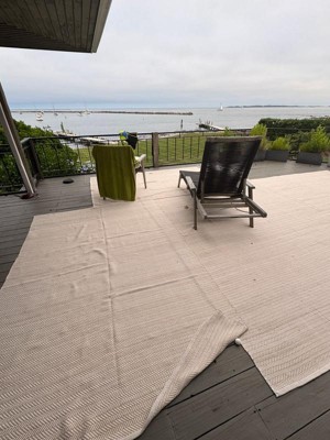 I love the feel, pattern and look. Mine are now two years old and are in a screened in porch. We did get weather on them, but not direct.Within the first six months, both had black stains. I scrubbed with mild detergent. Then tried something stronger. Never could it out. I turned the rugs over and, fortunately, the stain did not come through. So far this side has held up.