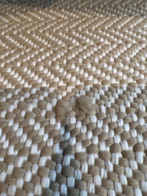 I love the feel, pattern and look. Mine are now two years old and are in a screened in porch. We did get weather on them, but not direct.Within the first six months, both had black stains. I scrubbed with mild detergent. Then tried something stronger. Never could it out. I turned the rugs over and, fortunately, the stain did not come through. So far this side has held up.