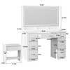 Elegant and Functional Makeup Vanity Desk CollectionTransform your beauty routine with our premium collection of makeup vanities, designed to cater to all your styling and organizational needs. Whether you’re a professional or just want to elevate your personal space, our range of vanity desks offers the perfect blend of functionality, style, and convenience.1. Makeup Table with Large LED Light MirrorThe Makeup Table with Large LED Light Mirror is a true game-changer for anyone serious about their beauty routine. Measuring 43.3" x 25", this vanity provides an expansive view that ensures you never miss a detail. The large mirror is framed by a 3-color LED strip that can be adjusted with a simple touch switch, allowing you to create the perfect lighting and ambiance for any occasion. Crafted with durability in mind, this sleek and stylish design is an elegant addition to any room. Whether you're getting ready for a day at work or a night out, this makeup table ensures that you do so in style.2. Vanities Desk with LED Mirror and Built-in Power StripDiscover the convenience of the Vanities Desk with LED Mirror and Built-in Power Strip. This versatile desk not only features a high-quality LED mirror with 3 color modes and adjustable brightness but also comes equipped with a built-in power strip. The power strip includes 2 USB ports and 2 standard plug sockets, making it easy to charge your devices or use electronics like hair dryers right at your vanity. Built with high-quality materials, this desk combines durability with style, making it a perfect addition to your daily beauty routine.3. 7-Drawer Makeup VanitySay goodbye to clutter with our 7-Drawer Makeup Vanity, designed to keep your space organized and stylish. With a generous 19-inch wide desktop, this vanity is ideal for makeup application, storing daily cosmetics, or even serving as a temporary office space. The design includes one main drawer for essentials like hair accessories and jewelry, along with six deep drawers that provide ample storage for cosmetics, skincare products, office supplies, and more. Crafted with precision and a keen eye for style, this vanity desk is a must-have for anyone looking to maintain a clutter-free and beautiful living space.4. Makeup Table with Hair Dryer StandUpgrade your dressing area with the Makeup Desk with Hair Dryer Rack, an elegant and practical addition to any space. This vanity is equipped with 2 standard sockets, 2 USB ports, and a dedicated hair dryer rack, making it easy to keep all your essentials within reach. Perfect for dressing rooms, bedrooms, salons, or live streaming setups, this desk is meticulously crafted to combine style and practicality. With attention to detail in every aspect of its design, this makeup table enhances the beauty and functionality of any setting.5. Built to Last - Durable and Long-Lasting QualityInvest in a vanity desk that’s designed to stand the test of time. Crafted from high-quality P2 engineered wood, this vanity desk boasts a thickened 1-inch tabletop with a maximum load-bearing capacity of 80 lbs. It’s built for daily use, offering long-term storage while seamlessly integrating functionality and aesthetics. With no pungent odor, it ensures a pleasant and healthy experience. This reliable and fashionable piece is a must-have for anyone looking to add a touch of elegance to their space.6. Quality Service You Can TrustWhen you choose our vanity desk, you're choosing quality service and peace of mind. The vanity set arrives in two packages, containing mirrors, tables, drawers, assembly spare parts, and clear installation instructions. Assembly is straightforward, with detailed steps to guide you through the process. Should you encounter any questions or issues with the product or installation, our dedicated team is always ready to assist. We're committed to ensuring your satisfaction, making your shopping experience worry-free from start to finish.
