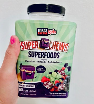 [This review was collected as part of a promotion.] My seven year old twins recently tried these Force Factor Superfoods Chews and we were amazed at how great they tasted. They have all the daily superfoods my kids need and come in a great tasting Berry Grape flavor that my kids absolutely loved. It's a really great and easy way to get your kids to take their necessary supplements without complaint.
