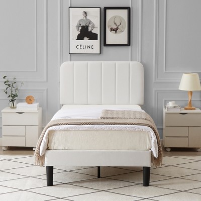 Twin Bed Frames, Velvet Upholstered Platform Bed Frame with Bookcase Headboard, Heavy Duty Steel Support Legs, Easy Assembly, Noise Free, White