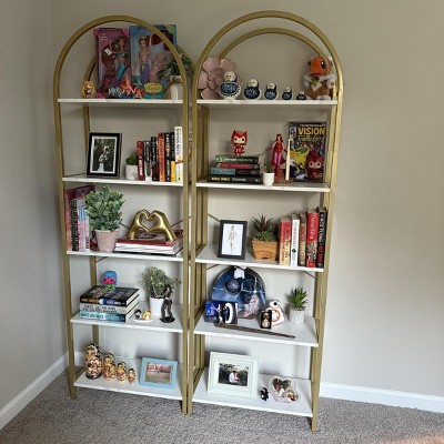 Bookshelf 5 Tier Bookcase Arched Display Racks Tall Standing Bookshelves Metal Frame Modern Storage Rack Shelf Large Wood Book Shelf