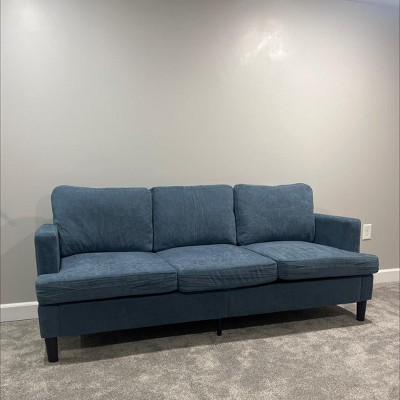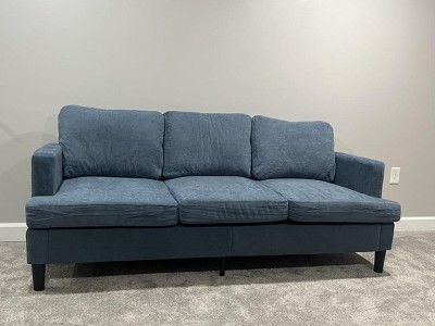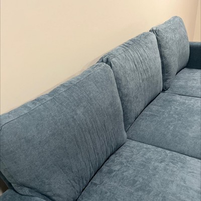 Looks like a worn out couch. Fabric is wrinkled. Back cushion is thin. And it was challenging to put it together. Had a hard time fitting the pieces together with the screws and holes barely aligning. Now I have to take it apart and return it. What a waste of my time.