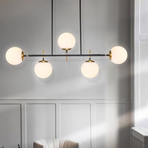 LLHZSY Modern Transitional 5-Light Chandelier Frosted Glass for Dining Room - Black & Gold