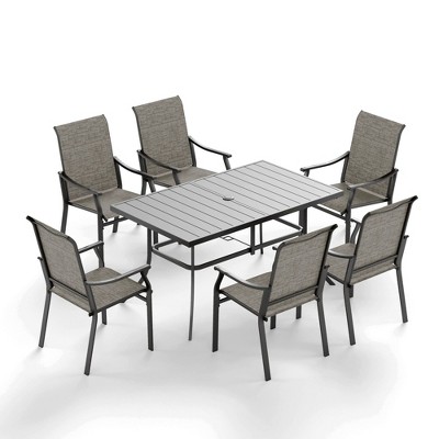 - Complete Patio Dining Set: This practical patio dining set consists of 1 table and 8 chairs, providing a comprehensive and convenient outdoor dining solution.