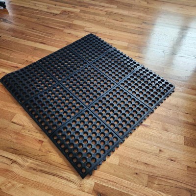 - Interlocking Rubber Floor Mat: The multipurpose rubber matting adds cushion and support without compromising its durable quality. The anti-fatigue interlocking mat tiles have drainage holes, making it functional as a restaurant mat, bar mat, pool mat, safety mat, rubber utility mat and garage floor mat.