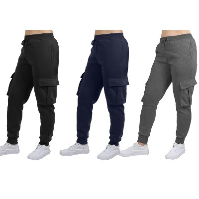 Blue Ice Women's Loose Fit Fleece Jogger Sweatpants with Velcro Cargo Pockets-3 Pack