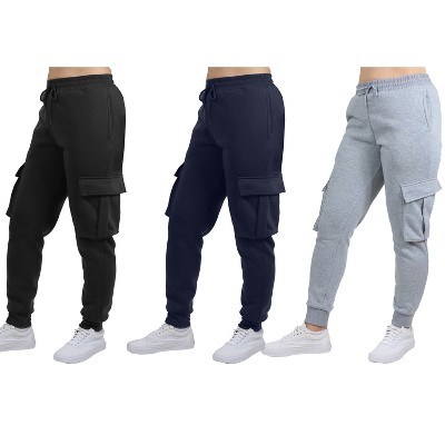 Blue Ice Women's Loose Fit Fleece Jogger Sweatpants with Velcro Cargo Pockets-3 Pack