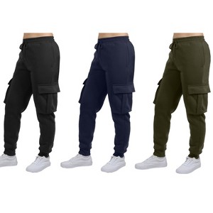 Blue Ice Women's Loose Fit Fleece Jogger Sweatpants with Velcro Cargo Pockets-3 Pack