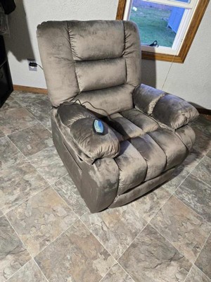 [This review was collected as part of a promotion.] This overstuffed recliner changes the game in comfort. I’ve never sat in a more pillowy chair with such softness, that it feels like I’m literally on a cloud. The width of the chair is wide and very roomy to move in any position you feel most comfortable. The armrests are double the size of ordinary chairs. The microfiber material is smooth, easy to clean, and of excellent quality. The chair can recline so far back that it feels almost like a bed. It can lift you up and forward to a standing position which is great if you have difficulty getting out of a chair on your own. It also has so many other luxuries that add to its value like massaging, vibration, and heat. All sorts of modes and configurations all controlled with 2 corded remotes. I love that these remotes will be impossible to lose. Both sides of the chair have pockets and are made of a stretch fabric and are the same material as the recliner. The instruction manual could have been a bit more detailed with larger illustrations to see the connections better.