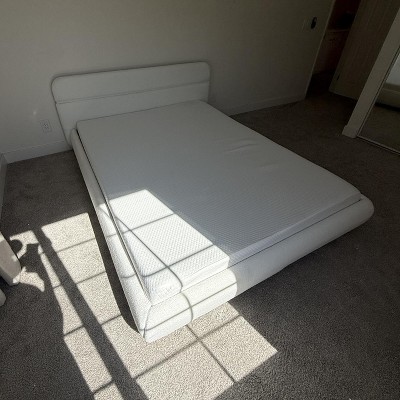 Overall I like the bed frame and boucle style but I am so unhappy with how low the bed is overall. Your feet are completely on the floor when sitting up. It’s looks like a child’s bed. So sad, thought I’d love it.