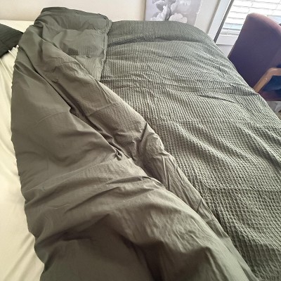 • Crafted from 100% natural cotton, it's ultra-soft and breathable. The waffle-woven surface adds a plush, puffy thickness, while the cotton percale reverse ensures a gentle, airy feel against the skin.