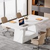 The versatile wooden office desk not only can work great as an executive desk, computer desk, conference table but also as dining table. The unique appearance makes it a highlight for your home furniture. This large wooden office desk boasts an elegant and contemporary aesthetic and features a white faux marble veneer, paired with unique trapezoidal table leg design, creating a stylish workspace that inspires productivity and creativity