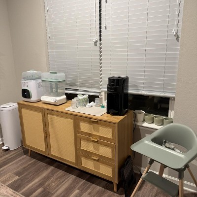 Im a sleep deprived new parent so take that into consideration alongside that my husband did the installation. It took him about 2 hours and he was not happy about it. However- if you are looking for an affordable baby bottle/ things station… this is it!!! Literally breathed life back into my home. I have a place to put all of the baby things. Does it match my floors? No. Do I care? No. It is aesthetically cute, one door is harder to close. Can’t be too mad since I didn’t assemble and I got a great price. I’m happy. Great for a bottle station set up. It’s on the smaller side but has. Great width where it can hold something comparable to a Kerig machine.