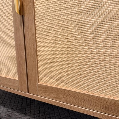 Home Imports Emporium Double Door Rattan Table – Natural Woven Cabinet for Modern Boho Home Decor, Versatile Storage Cabinet with Drawers