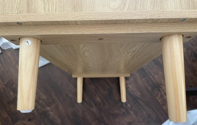 I love the look and once it's fully put together it looks great! The only issue I had is that the middle leg is longer than the four on the outside so it wobbles pretty badly. I fixed it by putting rubber stoppers under the outside four and that helped.