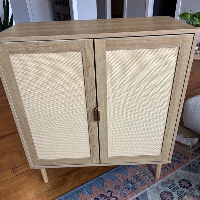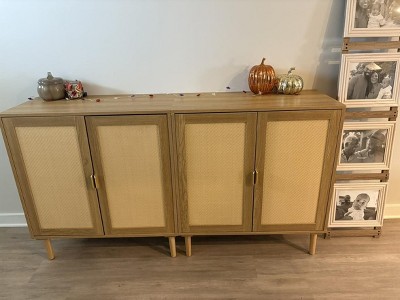 Rattan section arrived dented. Too heavy to return. So bummed. Building was lengthy and the door hinges were very difficult but it’s a pretty solid piece of furniture!