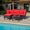 BestMassage 5 Pieces Patio Furniture Set Rattan Patio Sofa Set with Coffee Table Ottoman Cushions