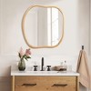 Blending nature with art, this irregular-shaped square wall mirror with a natural pine frame and soft rounded corners brings warmth and beauty to your living space. Its unique, irregular shape and the frame's natural grain not only enhance your wall's decorative aspect but also reflect a refined attention to detail. The solid MDF backboard ensures the mirror's durability, while the easy installation process allows you to enjoy the fun of decorating with ease. Whether used as a wall decoration or a practical mirror, this wall mirror can perfectly integrate into your home style, enhancing the taste and elegance of your space..