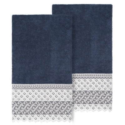 Your decorations are not complete without exotic embroidered towels for the comfort of your family and guests. The PENELOPE towels feature an intricate peacock embroidery on a sparkling tafetta border. Cloud soft and super absorbent, these luxurious, durable towels keep their plush appearance after washing. This collection is available in 7 elegant colors: White, Cream, Latte, Teal, Navy, Light Gray and Dark Gray. The PENELOPE Towel Collection brings a glamorous spirit and richness to your home decor and makes a great gift!