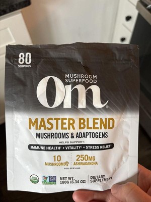 Om Mushrooms Mushroom Powder, 10 Mushroom Complex, Master Blend + Ashwagandha, 6.34 oz (180 g)