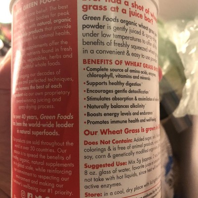 Well, Swanson's reviewers rejected my first review, which included information you would want, so here's one the reviewers may want: High quality powder. Smells and tastes 'natural' and 'green,' which is not bad. The powder gets some small lumps in it, so use your spoon to break up the lumps in the cup before adding pure water so it will dissolve more completely as you stir it briskly. Obviously, Wheat Grass Juice Powder is rich in Chlorophyll, which as everybody knows is a good blood builder and purifier. This is a very healthy addition to one's daily diet. I'm completely in favor of it. Works for me.