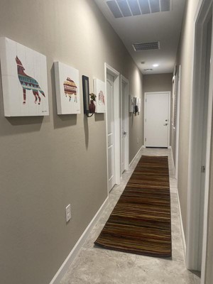 Love these rugs! Perfect fit for my hallway. Nice quality and thickness, that feels good on my bare feet.