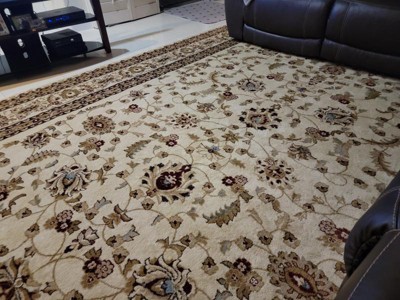 Rug was beautiful but lighter color than appeared in picture. Outside border was not the same as shown online. Had to return. Haven't received refund yet.