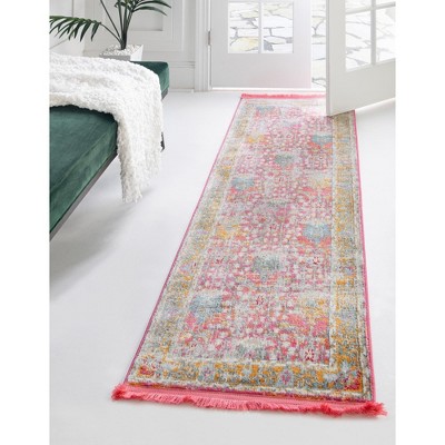 Unique Loom Bromley Collection Area Rug - Midnight (2' x 13' 1" Runner Pink/Ivory)