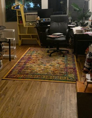A: The rug's pile material is 100% polypropylene, known for its durability and softness.