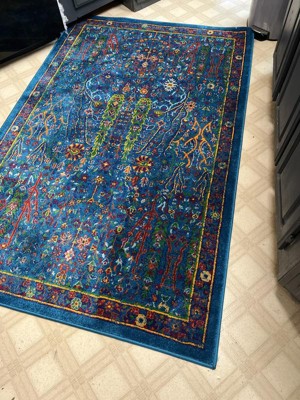 Got 2 sizes for kitchen area. My husband loves the rugs, says they are bright & cheery. I usually get wool rugs( but too expensive to put in kitchen) they do look a bit cheaper in my opinion because they are polyester. So colors are super bright. If you vacuum in one direction they look more bright aqua,,vacuum the other direction the nap looks more navy blue. I didn’t like at first because rugs are polyester but have grown to enjoy the bright colors more and more. And, they were very inexpensive.