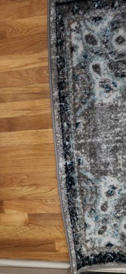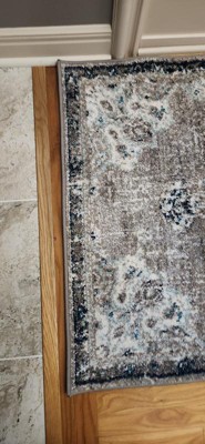 I purchased this rug to go in the vanity area of our master bath. It’s perfect Very well made. The colors are just as pictured and go perfectly together and with the grays and tans in our bathroom. The hint of navy and turquoise are great accessory colors.
