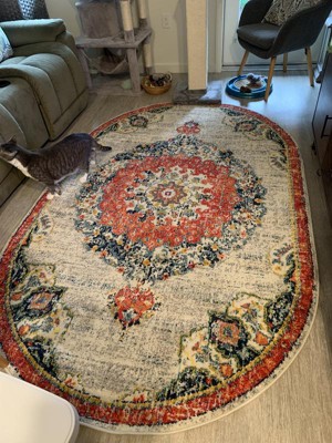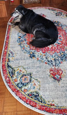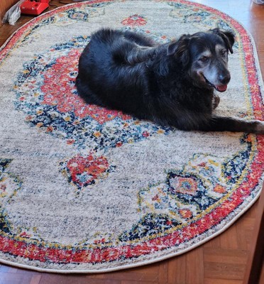 This oval rug is exceptionally beautiful, perfect for our boat's needs and even my furry baby loves it too.