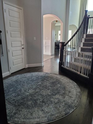 I bought this a few weeks ago and was really excited to put it in my living room. I thought the color would be a darker gray, it looked mostly dark in color to me online. But, there is a lot of light coming through underneath the gray. Just be prepared for a brightness underneath the dark gray color. I was surprised but it was a great suprise and I kept the rug. I've had many compliments so far on it!