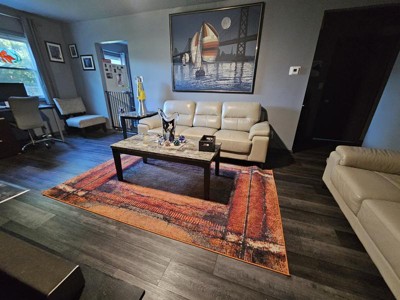 This rug is gorgeous and colorful, it stands out as you enter the room, the different spaced out colors add to the boldness of this multi dynamic style.
