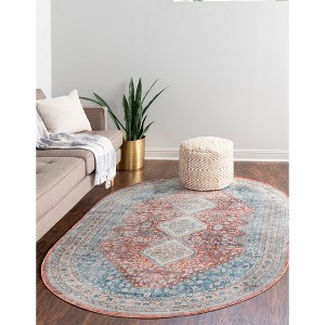 Unique Loom Newport Collection Area Rug - Rosecliff (5' 3" x 8' Oval Red/Light Blue)