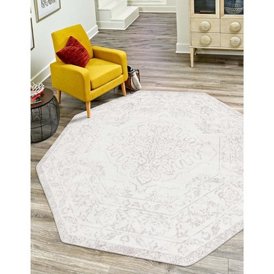 Unique Loom Nyla Collection Area Rug - Smile (7' Octagon Ivory/Gray)