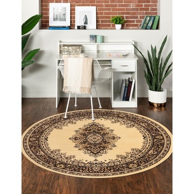 Unique Loom Parker Collection Area Rug - Kokulu (7' 10" Round Ivory/Beige)