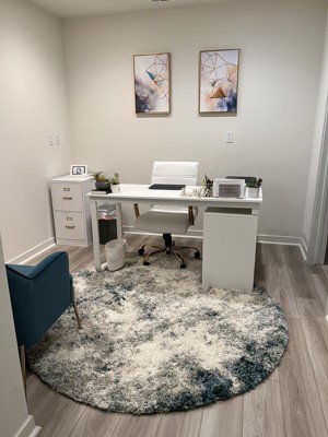 This rug goes perfect with the round coffee table in my living room. The pattern and color scheme matches the decor on the walls and also the end tables.