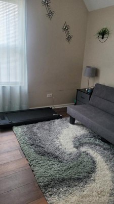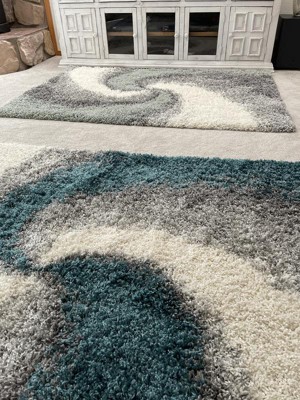 Great soft shag rug! Perfect size to highlight sitting area. Design is unusual , soft grays and pale green. Neutral but swirls design makes it pop! Shag is good length and thickness.
