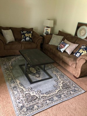 This is a beautiful rug very elegant matches my family room decor very well this is my second rug purchased will be purchasing another