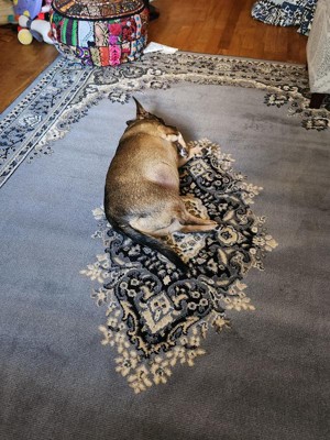Guests appreciate the beautiful design and vibrant colors of the rug, which enhances their living spaces. Many find it soft and comfortable underfoot, making it ideal for various rooms, including dining areas and entryways. The rug's quality and affordability are frequently highlighted, with guests expressing satisfaction in its ability to complement their decor. Some minor concerns about wrinkles and color variations were noted, but overall, the rug meets expectations and adds elegance to homes.