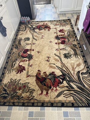I purchased this rug for my kitchen which has a French country theme. It works beautifully with the other design elements and I am extremely pleased with this rug