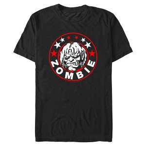 Unleash the horror-metal madness with officially licensed Rob Zombie apparel—where heavy riffs meet twisted, cinematic style! This Men's Undead Badge T-Shirt features the face of a Zombie, encircled by red and white stars, and the word "Zombie" in bold lettering. Whether you're blasting through the pits or cruising in your Dragula, this gear keeps your style as loud and wild as the music. Get ready to rock, shock, and freak the hell out—Zombie-style!