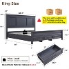 SinCiDo Farmhouse King Size Bed with Headboard, Wood Platform Bed Frame with 3 Storage Drawers, Easy Assembly