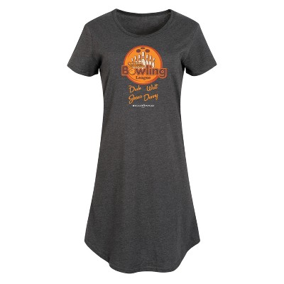 Women's The Big Lebowski Abide Bowling Pin Graphic T-shirt Dress - Heather Charcoal - Medium