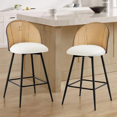 - 【Mid-Century Charm with Faux Leather Seat】Bekrvio 29" swivel bar stools blend mid-century modern design with a smooth faux leather seat and handwoven rattan backrest, bringing both elegance and comfort to your kitchen island or home bar. The natural cane texture adds warmth and visual depth, creating a relaxed yet refined atmosphere.