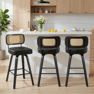 Bekrvio 26" Mid Century Modern Counter Height Bar Stools - Rattan Cane Back, Wood, PU Leather Upholstered for Kitchen Island Dining - 2 of 4Bekrvio 26" Mid Century Modern Counter Height Bar Stools - Rattan Cane Back, Wood, PU Leather Upholstered for Kitchen Island Dining - 3 of 4Bekrvio 26" Mid Century Modern Counter Height Bar Stools - Rattan Cane Back, Wood, PU Leather Upholstered for Kitchen Island Dining - 4 of 4