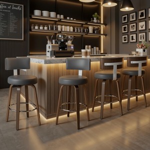 Bekrvio 26" Faux Leather Swivel Bar Stools Set of 4,Mid Century Modern Counter Chairs with Wood Legs and Curved Back for Kitchen Island, Gray
