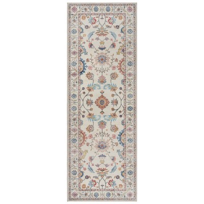 Crystal Print Vela Casual Transitional Floral Border Livingroom Dining Bedroom Flat Pile Easy Care Indoor Area Rug